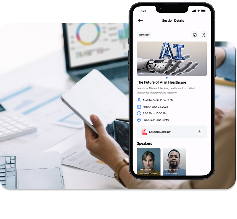 From annual conventions to kick-offs and customer days, LetzFair’s white-label app lets you create experiences fully aligned with your brand, differentiating pathways for different audiences (clients, partners, employees, top management). Manage plenary sessions, workshops, product demos, and breakout sessions in-person or hybrid; activate Q&A, polls, and live surveys to increase participation; make content available on-demand after the event to extend its lifecycle. All orchestrated from a single platform.