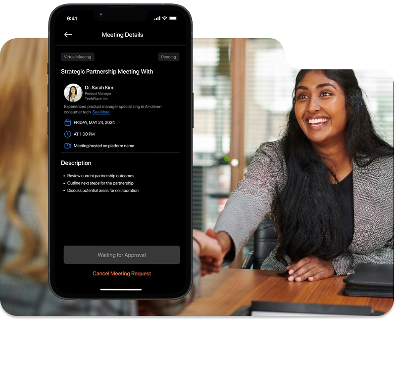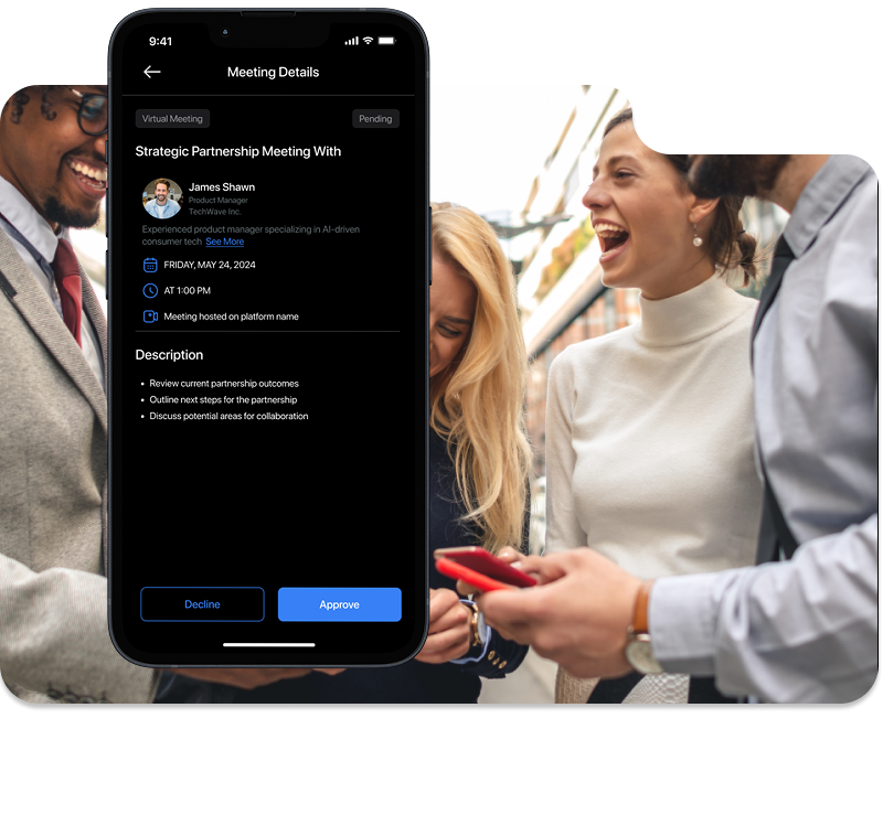 Beyond classic AI matchmaking, the platform can organise structured meeting moments (speed networking, themed tables, pre-scheduled 1:1 meetings) where participants are paired in a targeted and qualified way. This system reduces randomness and increases the quality of relationships built within the association.
